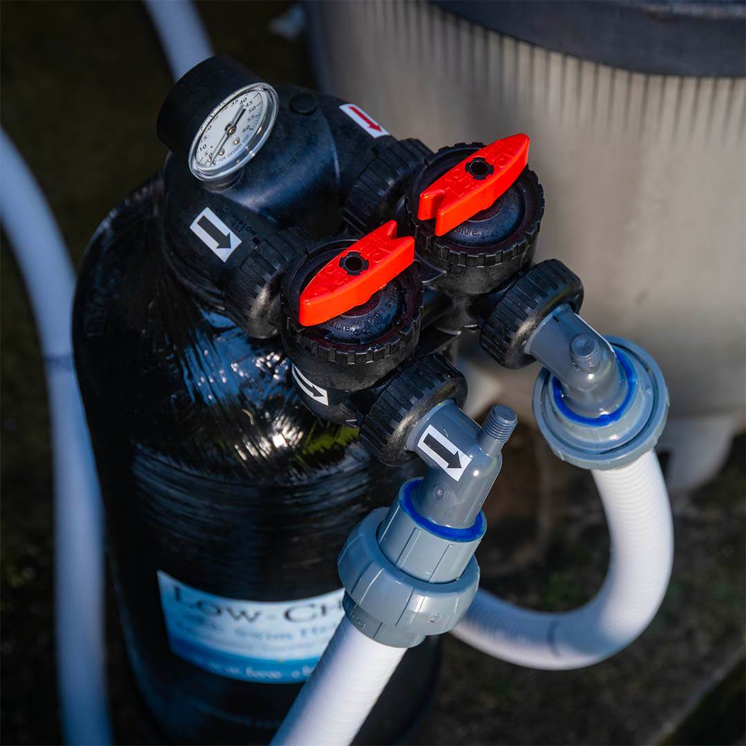 Salt systems generate chlorine by electrolysis and rely on a salt cell and control electronics, which can fail, scale up, or require periodic replacement. They also introduce large amounts of salt that can contribute to corrosion and damage on metal fixtures, stonework, and surrounding hardscapes over time. Low-Chlo uses no salt cell, no electrolysis, and no added salt, helping avoid those repair costs and corrosion worries while still giving you low-chlorine, comfortable water.